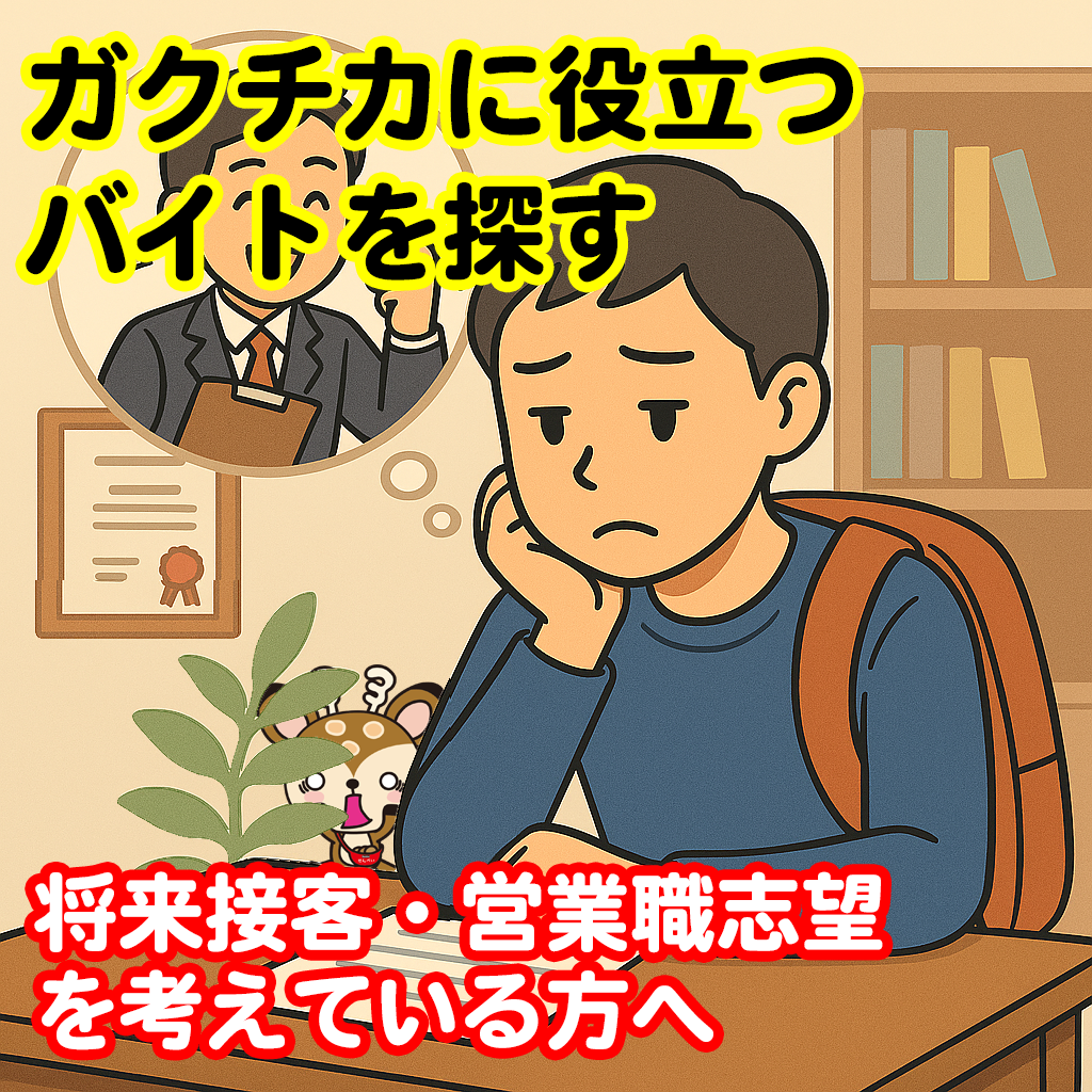 学生にとって最も手軽で、かつ効果が大きいのが「接客系アルバイト」です。アルバイトを通じて、学生のうちに“営業の基礎力”を育てておくことで、